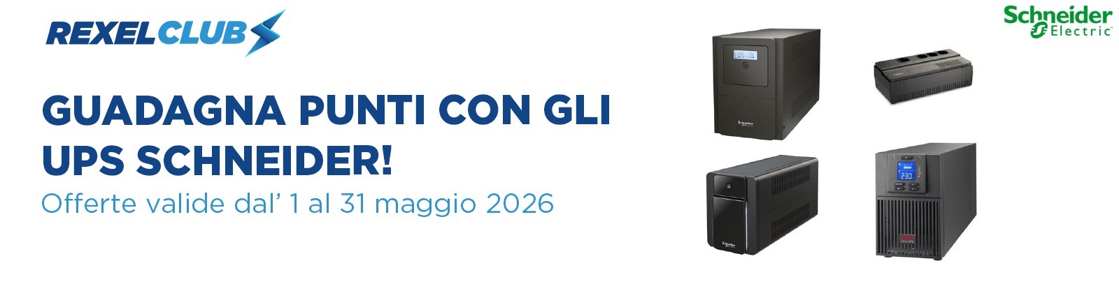 Acquista gli UPS Schneider Electric in promozione e accumula punti Rexel Club con questi prodotti: