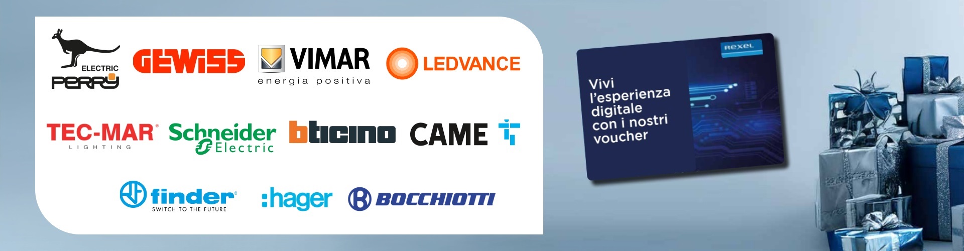 Dal 1° dicembre al 31 dicembre, approfitta di una promozione imperdibile! Effettua un ordine in un'unica giornata presso uno dei seguenti marchi: BTICINO S.P.A., VIMAR S.P.A., GEWISS S.P.A., SCHNEIDER ELECTRIC S.P.A., CAME ITALIA SRL, FINDER S.P.A., HAGER BOCCHIOTTI S.P.A., PERRY SRL, LEDVANCE S.P.A., TEC‑MAR SRL e ricevi un voucher digitale!