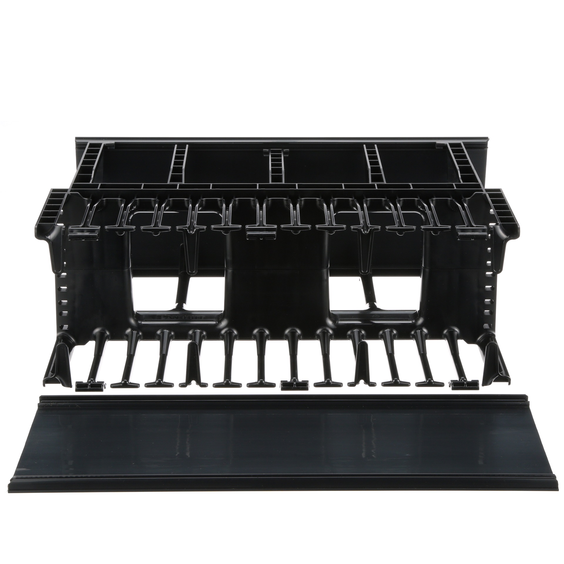 The NetManager™ High Capacity Horizontal Cable Manager cost-effectively organizes and protects copper and fiber network cabling in any standard EIA 19 inch (483mm) rack or cabinet. Large front finger openings easily accommodate Cat 6 and 6A cables, reducing installation time and maintenance costs. The dual-sided manager is 4 RU and has hinged front and rear covers. The manager is black.