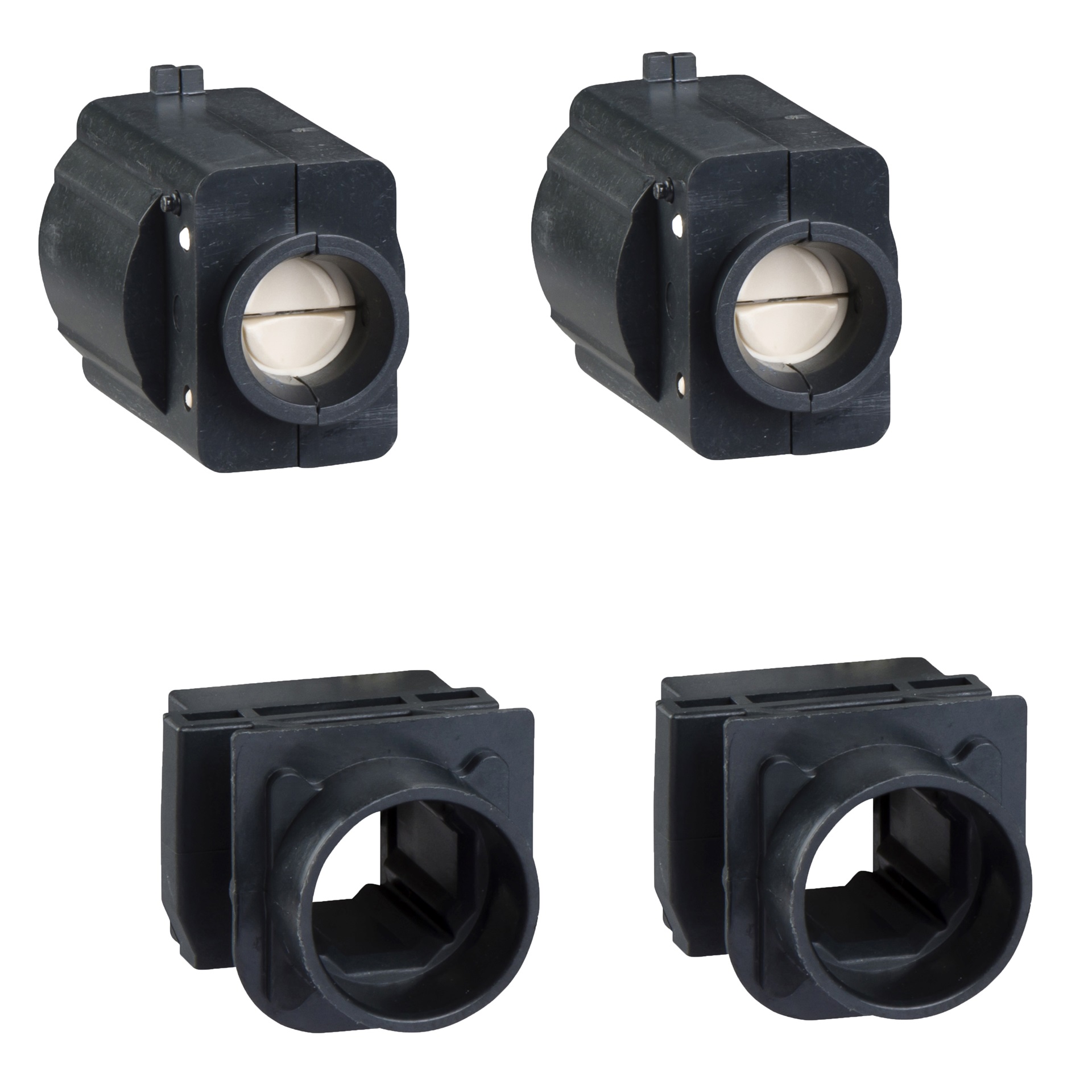 Accessorio per lo zoccolo di Compact NSX 100/160/250. Gli accessori consentono di mantenere un grado di protezione IP40 quando l'interruttore è rimosso dallo zoccolo. Sono venduti in set da 2 elementi.
