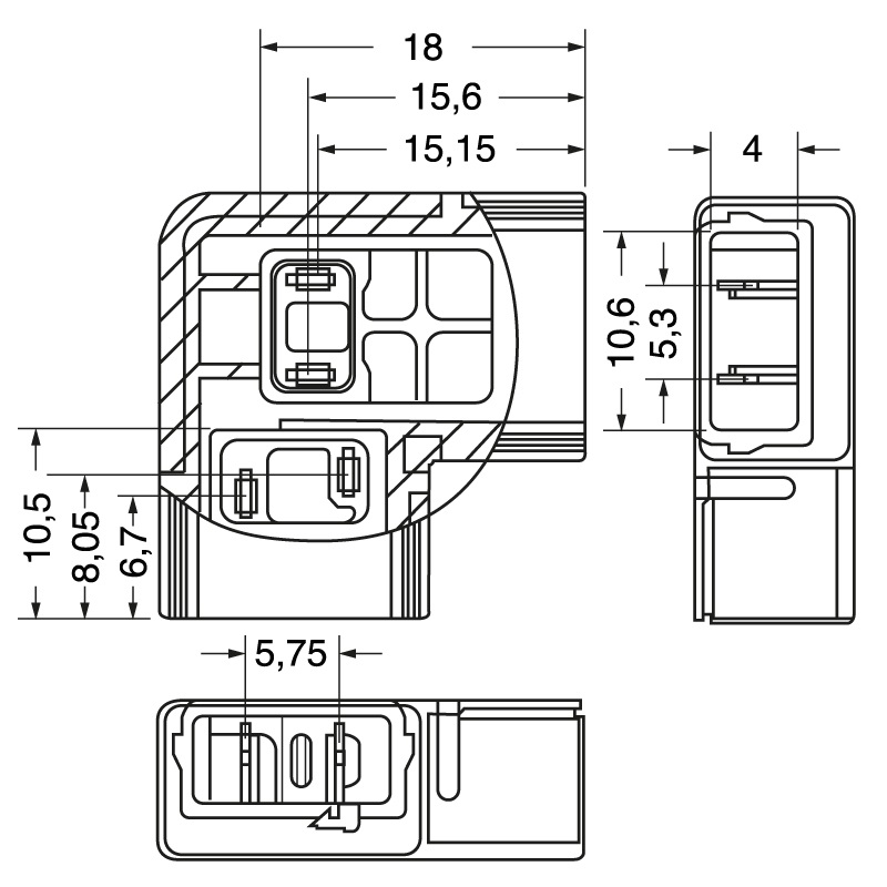 Connettore angolare a 4 poli, ideale per installazioni elettriche affidabili e durature.