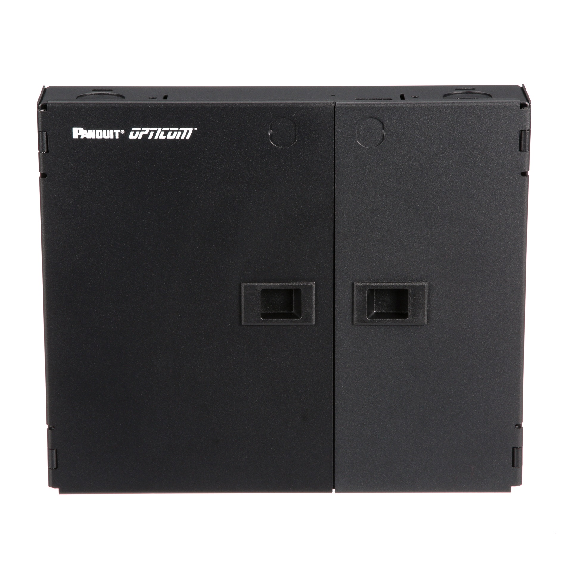 The Panduit® Opticom® Wall Mount Fiber Enclosure is designed to manage and organize fiber distribution when space is limited. The FWME2 features 2 FAPs and can be used as an interconnect or cross-connect in any telecommunications room and can use any standard FAP or FMP series adapter panel. The FWME2 is compatible with most Panduit® Mini-Com®, ST, SC and Coax products. It features 2 ports, is made with steel and comes in black. 10.1”H x 12.0"W x 2.3”D (259mm x 305mm x 59mm)
