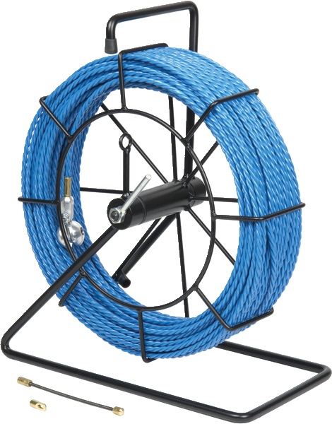 Sonda in poliestere intrecciato da 50 m con svolgitore, ideale per il passaggio cavi in guaine anche intasate.