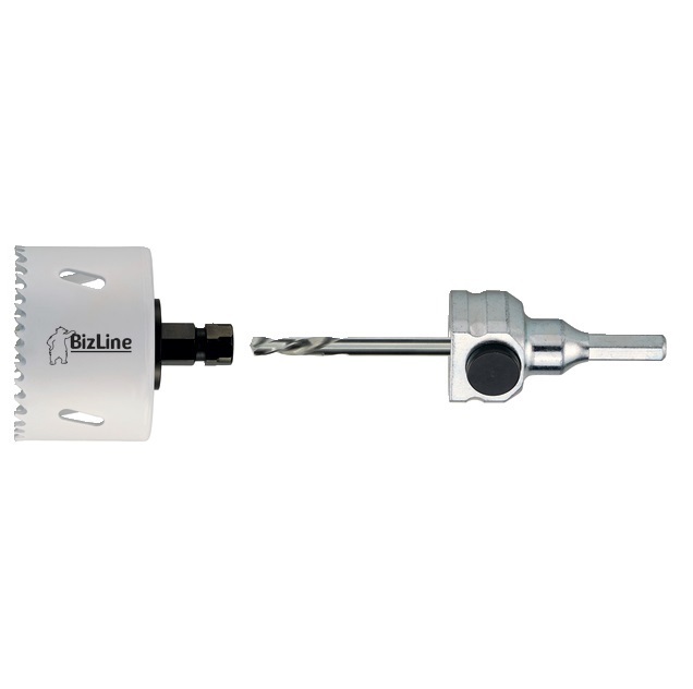 Albero esagonale per seghe a tazza CLIC II, con punta HSS 120 mm inclusa, ideale per qualsiasi sega a tazza CLIC II con Ø di 14-210 mm. Prodotto munito di serie con una punta di centraggio HSS cobalto BIZ 780 153. Senza percussione.