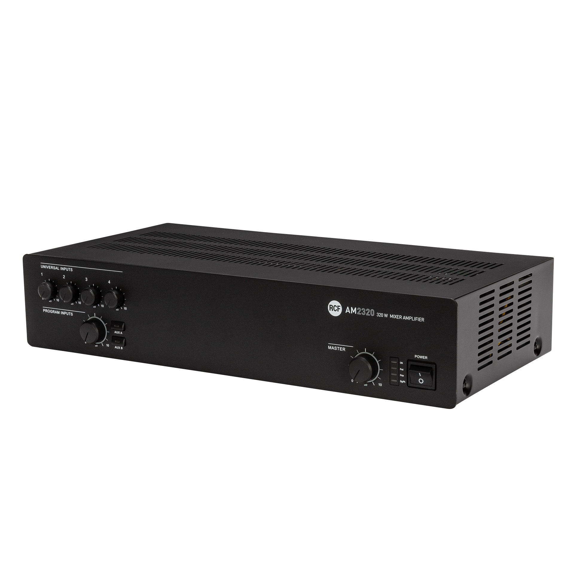 AM 2320 sono mixer-amplificatori aventi 4 ingressi audio mic.-linea su connettori rimovibili e 2 ingressi ausiliari per eventuali sorgenti sonore esterne (es. lettori CD, sintonizzatori radio, ecc.). L'amplificatori AM 2320 ha la potenza nominale pari a 320 W. L’uscita per diffusori acustici è disponibile sia a bassa impedenza oppure a tensione costante 100 – 70 V.