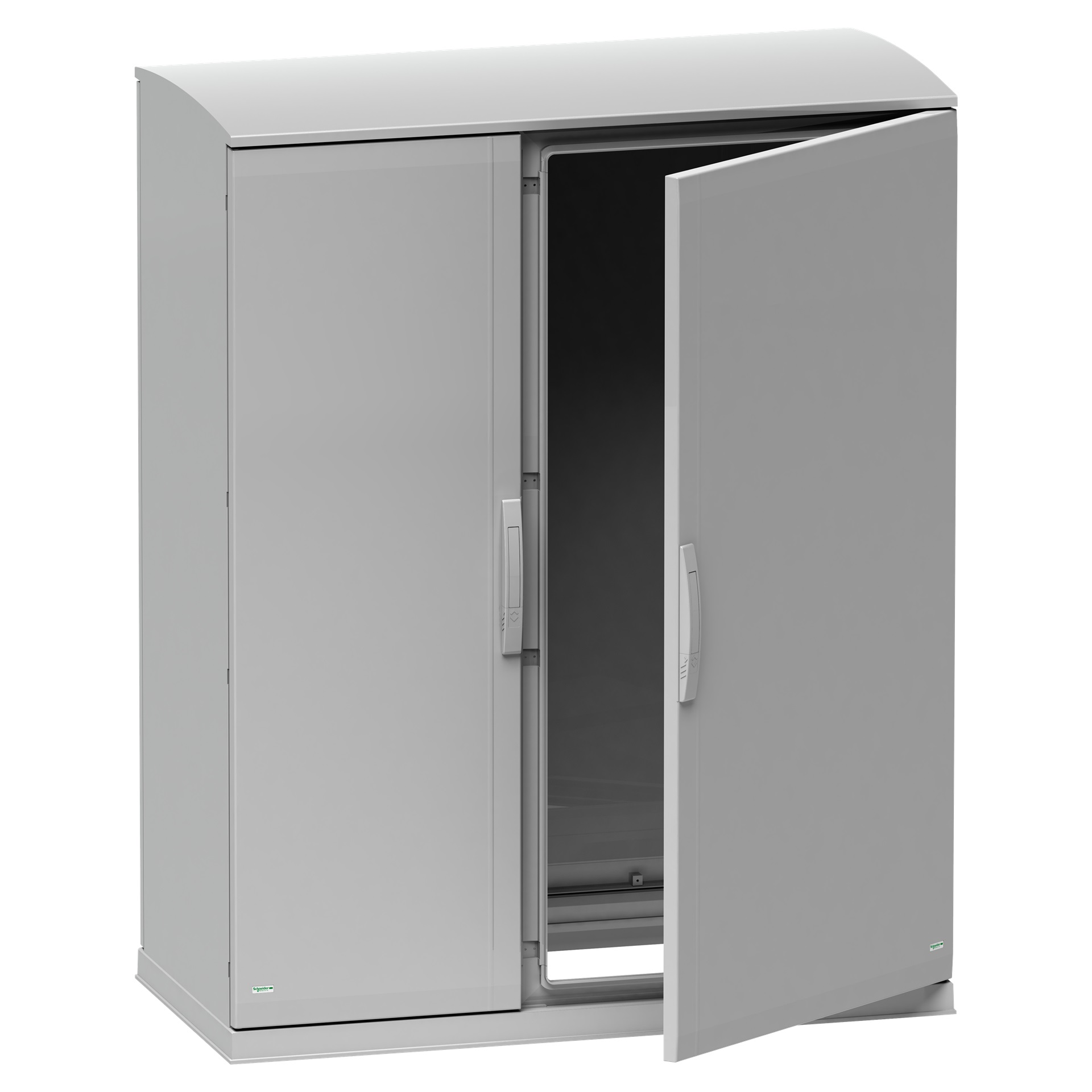 Questa versione PLAZT della PLA è un armadio versatile a pavimento adatto a varie applicazioni Ha dimensioni nominali di 1500 mm in altezza, 1250 mm in larghezza e 620 mm in profondità È realizzato in poliestere rinforzato con fibra di vetro, offrendo resistenza e resistenza agli ambienti difficili, tra cui ambienti esterni e industriali L'armadio è disponibile in grigio (RAL 7035) È costituito da due parti laterali, due sportelli anteriori piani, due pannelli posteriori, un tettuccio e un zoccolo Gli sportelli possono essere aperti fino a 180° sia dal lato destro che da quello sinistro, consentendo un facile accesso all'apparecchiatura all'interno Gli sportelli sono dotati di una serratura a quattro punti con una maniglia con inserto doppia barra da 5 mm Gli sportelli, i pannelli posteriori e il tetto sono rimovibili anche a scopo di manutenzione L'armadio offre un'efficace protezione contro vari pericoli, tra cui incendi, urti, polvere e acqua Può resistere a un incendio fino a 960°C secondo la norma IEC 62208 L'involucro ha anche una classificazione IK10 (IEC 62262), che indica un'elevata resistenza agli urti Ha un grado di protezione IP44 (IEC 60529), e offre un'elevata protezione contro polvere e acqua L'armadio, inoltre, è dotato di isolamento elettrico di classe II per prevenire scosse elettriche e consentire la realizzazione di soluzioni totalmente isolate È certificato UL e può essere conservato a temperature ambiente dell'aria comprese tra -35°C e 90°C senza influire sulle prestazioni.