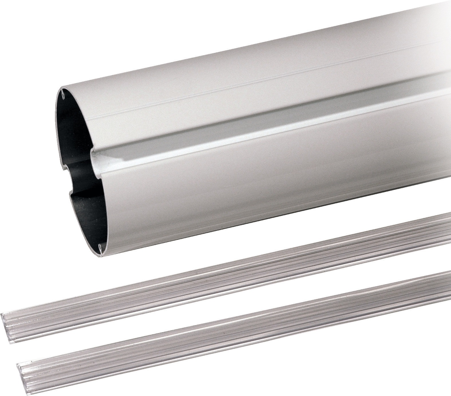 Asta a sezione tubolare in alluminio verniciato bianco, completa di profilo in gomma di copertura cava. Ø 100 mm, lunghezza asta: 5,35 m.
