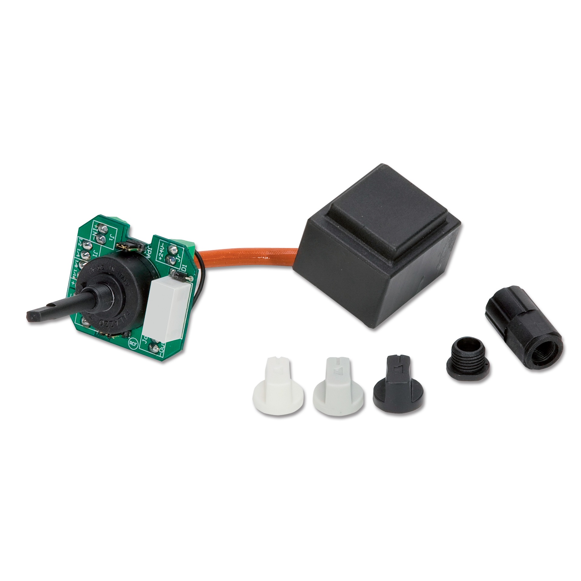 L’attenuatore AT 40T si compone di un circuito di controllo con commutatore a 6 posizioni (5 + off) più un trasformatore separato ed è utilizzabile nei sistemi a tensione costante 100 V, per regolare la potenza di uno o più diffusori aventi trasformatori di linea ed una potenza complessiva non superiore a 40 W. È dotato di relè (attivabile tramite un comando 24 V c.c.) per effettuare annunci con volume forzatamente al massimo oppure per inserire una seconda linea 100 V (non soggetta al controllo di volume), ma è anche configurabile per operare con linee a 3 fili (per ottenere il volume massimo all’uscita senza utilizzare il relè 24 V c.c. interno). L’attenuatore AT 40T può essere installato su qualunque telaio portafrutti (per impianti elettrici civili) semplicemente forando un falso polo ed avvitando il modulo. Sono fornite a corredo 3 manopole, ciascuna di colore diverso: bianco, argento, antracite. Nel caso lo spazio sia sufficiente, il trasformatore può essere posizionato all’interno della scatola elettrica dove è presente il circuito di controllo con il commutatore