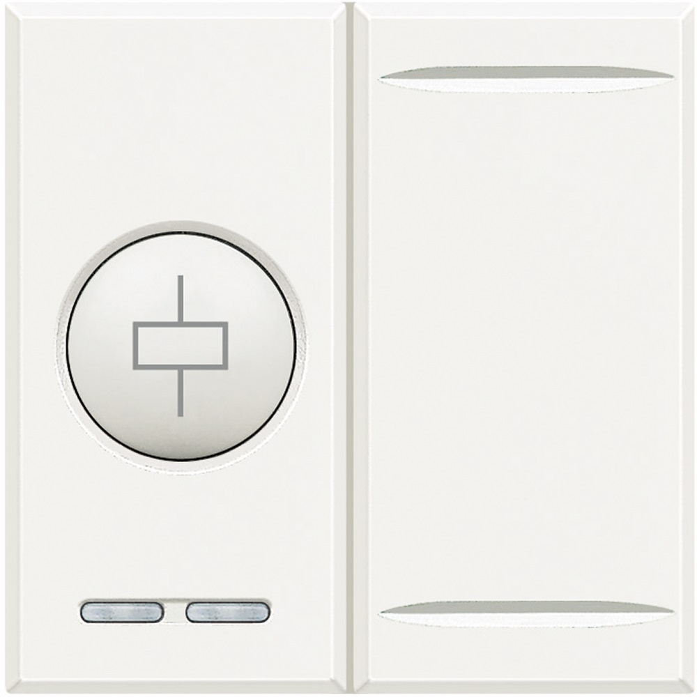 Attuatore Axolute con 1 relè 10 A per lampade ad incandescenza 4 A per lampade fluorescenti o trasformatori ferromagnetici e 500 W per lampade a LED e fluorescenti compatte destinato alle funzioni di Automazione e/o Gestione controllo carichi. Pulsante per funzionamento forzato del carico versione da incasso - 2 moduli.