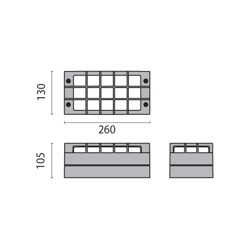 Apparecchio da parete e soffitto, per interni ed esterni, costituito da: Corpo e gabbia in alluminio verniciato / Diffusori in vetro / Guarnizione in EPDM / Viti di chiusura in acciaio inox