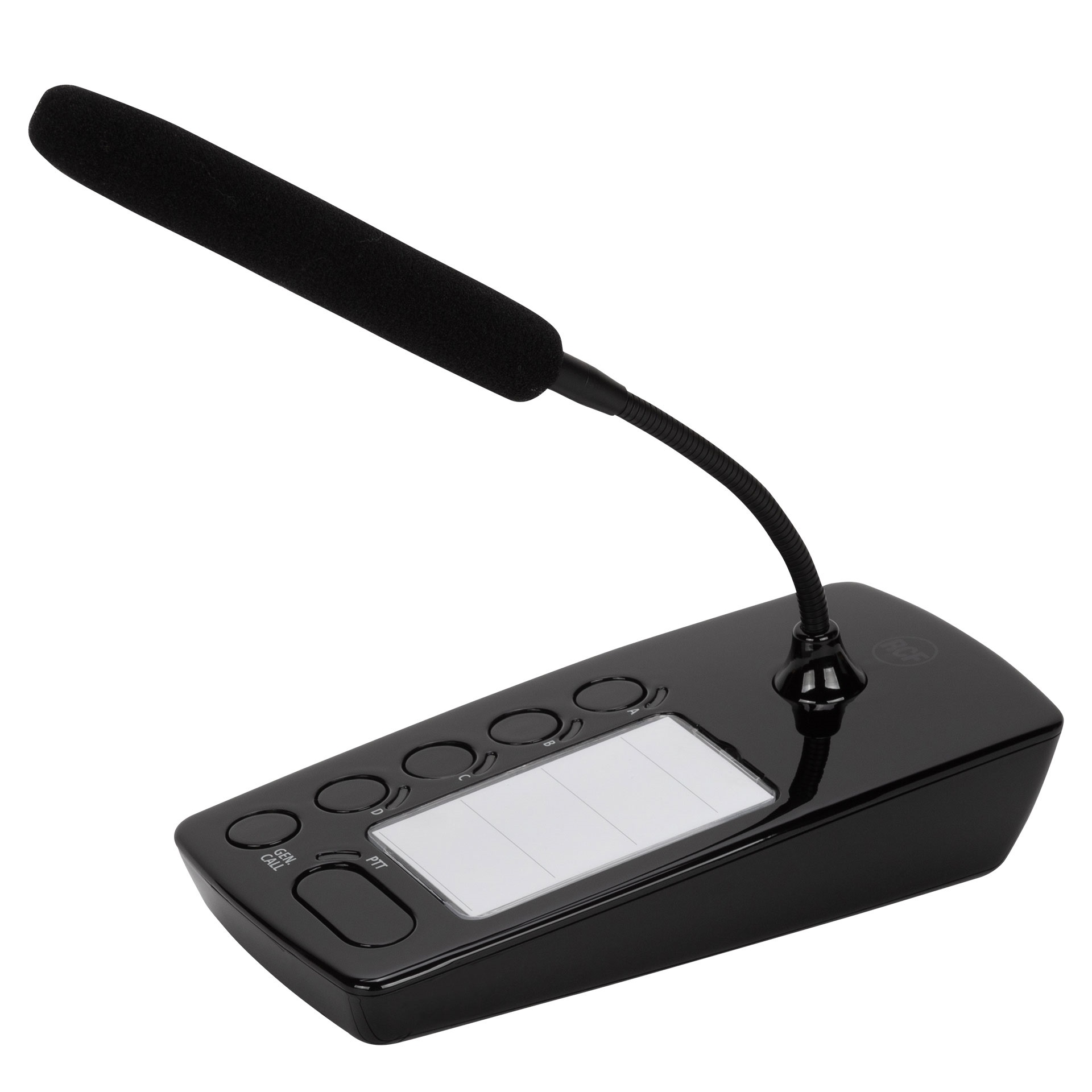 BM 404 è una console microfonica da tavolo con funzione paging che consente di effettuare annunci selettivi su 4 zone. Progettata come complemento per gli amplificatori DMA del sistema Business Music RCF, la console è costituita da un corpo polimerico antiurto, dotato di un microfono ad elettrete su stelo flessibile da 230 mm protetto da una spugna antivento in schiuma poliuretanica. Sono collegabili fino a 4 console in catena (con funzionamento di interblocco) verso ciascun amplificatore tramite cavo CAT5 (incluso). I pulsanti dedicati con LED consentono l'attivazione del microfono e la selezione della zona. Il tono di avviso è attivabile / disattivabile tramite interruttore. La RCF BM 404 è subito pronta all'uso e non richiede alcuna configurazione.