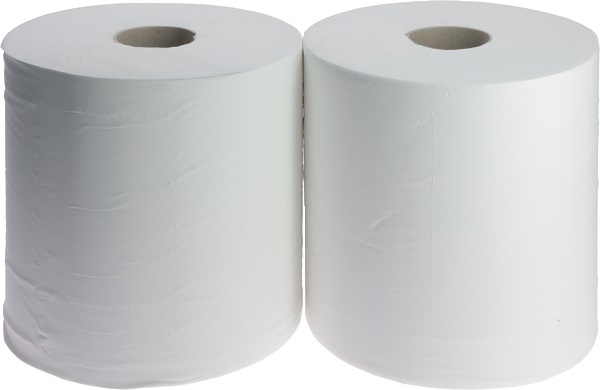 Rotolo asciugatutto in pura ovatta di cellulosa bianca, ideale per ambienti professionali.