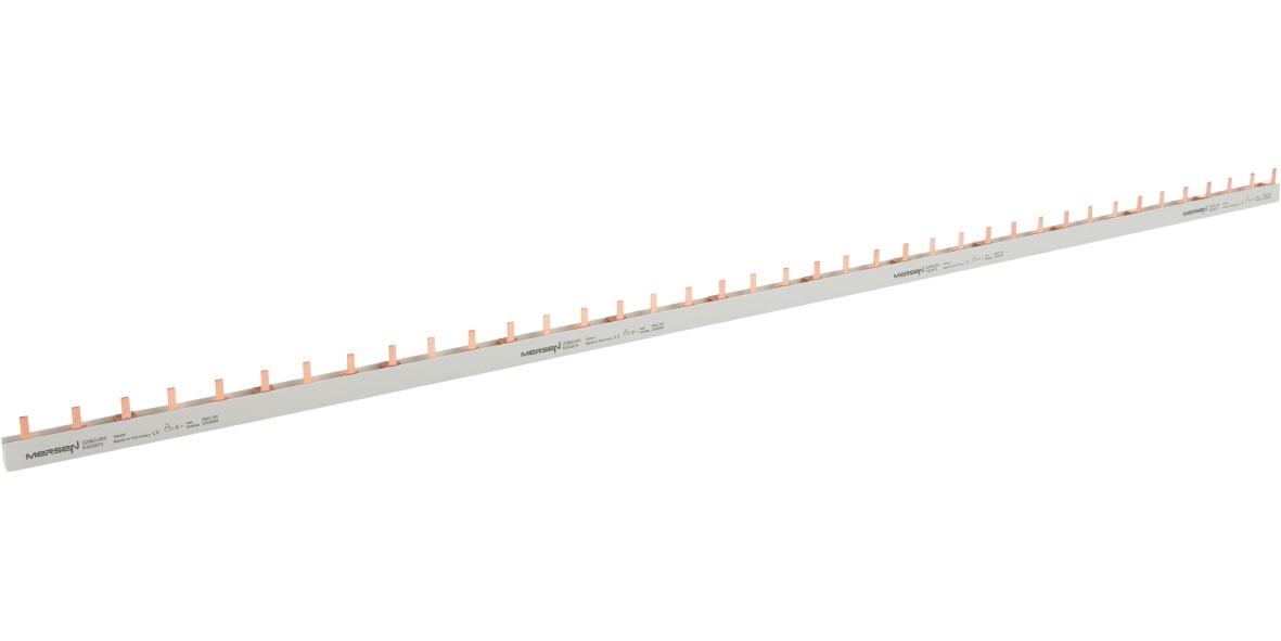 Fork Design Wiring bars in fork design are ideal for the wiring of modular panel-mounting devices as per DIN 43880 with flat-type, dual-function or single-screw terminals. Additional incoming terminals are required when wiring devices with flat-type or single-screw terminals. In contrast, devices with dual-function terminals allow bar connection to the top section of the terminal with simultaneous incoming supply in the bottom section. The use of end caps on multi-pole wiring bars guarantees optimum shock-hazard protection and prevents arcing at bar ends.L@£Pin Design Wiring bars in pin design are ideal for the wiring of modular panel-mounting devices to DIN 43880 with box terminal, frame terminal or two-scre clamp. The incoming supply to the wiring-bar system is provided over additional incoming terminals.