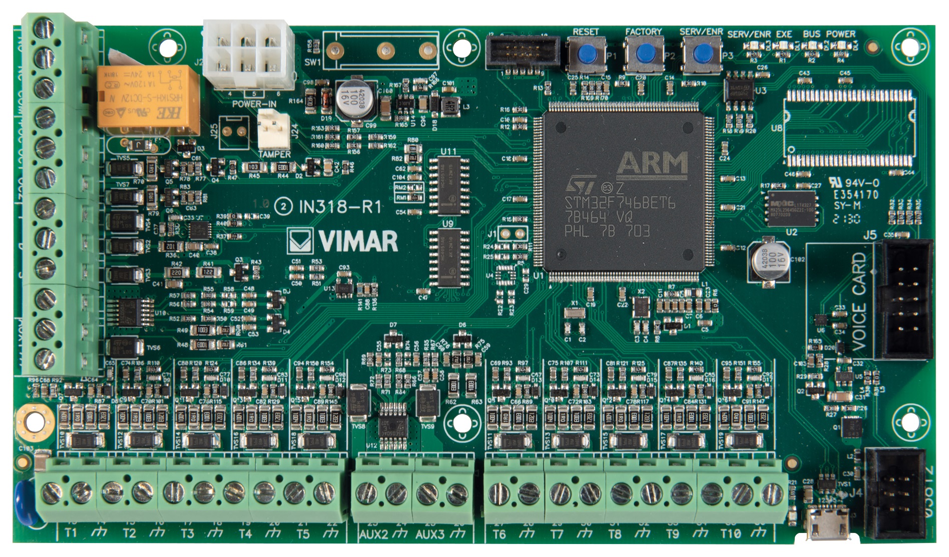 Centrale By-alarm Plus di controllo programmabile e gestibile da tastiera a display, alimentazione 13,8 Vdc, 10 zone In/Out locali espandibili a 65 per mezzo delle espansioni (moduli o schede), 3 uscite programmabili 12 Vdc, 1 uscita relè programmabile, 2 uscite open-collector programmabili