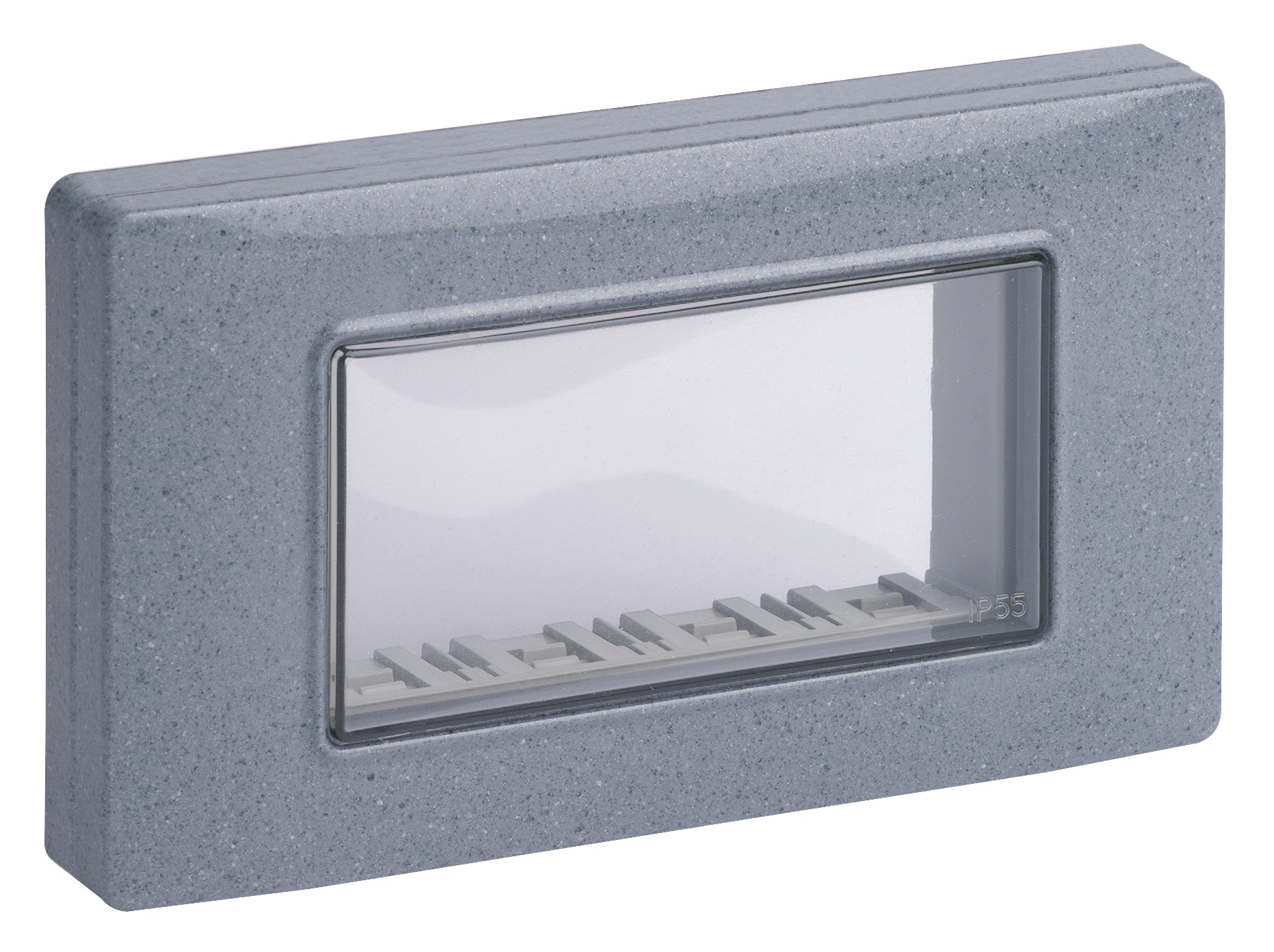 Calotta da parete IP55, 4 moduli Eikon, Arké e Plana, con viti, per scatole da incasso 4 moduli, grigio granito