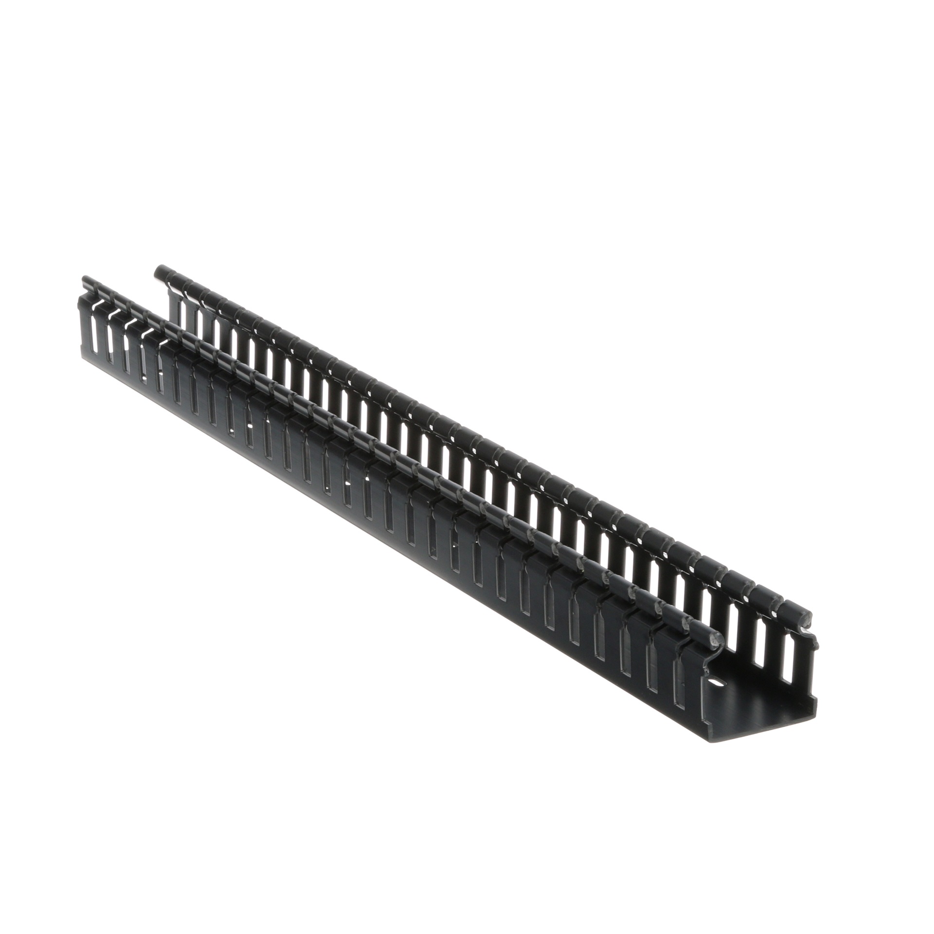 Panduct®Type H – Hinged Cover Wiring Duct; Color: Black; Cover Part Number: HC4BL6; Diameter (mm): 12.7; Length (ft.): 6.00; Material: Lead-Free PVC; Mount Method: Standard Mounting Holes; Nominal Duct Size – x – (In.): 4.00 – 4.00; Overall Height (In.): 4.10; Overall Height (mm): 104.1; Overall Length (ft.): – Foot; Overall Length (m): 1.8 Meter; Overall Length (mm): 1828.8 Millimeters; Overall Width (In.): 4.25 Inch; Overall Width (mm): 108 Millimeters; Product Type: Type – Hinged Cover Wide Slot Wiring Duct; Slot Width (In.): 0.31; Slot Width (mm): 7.9; Type: Base; Package Quantity: 6