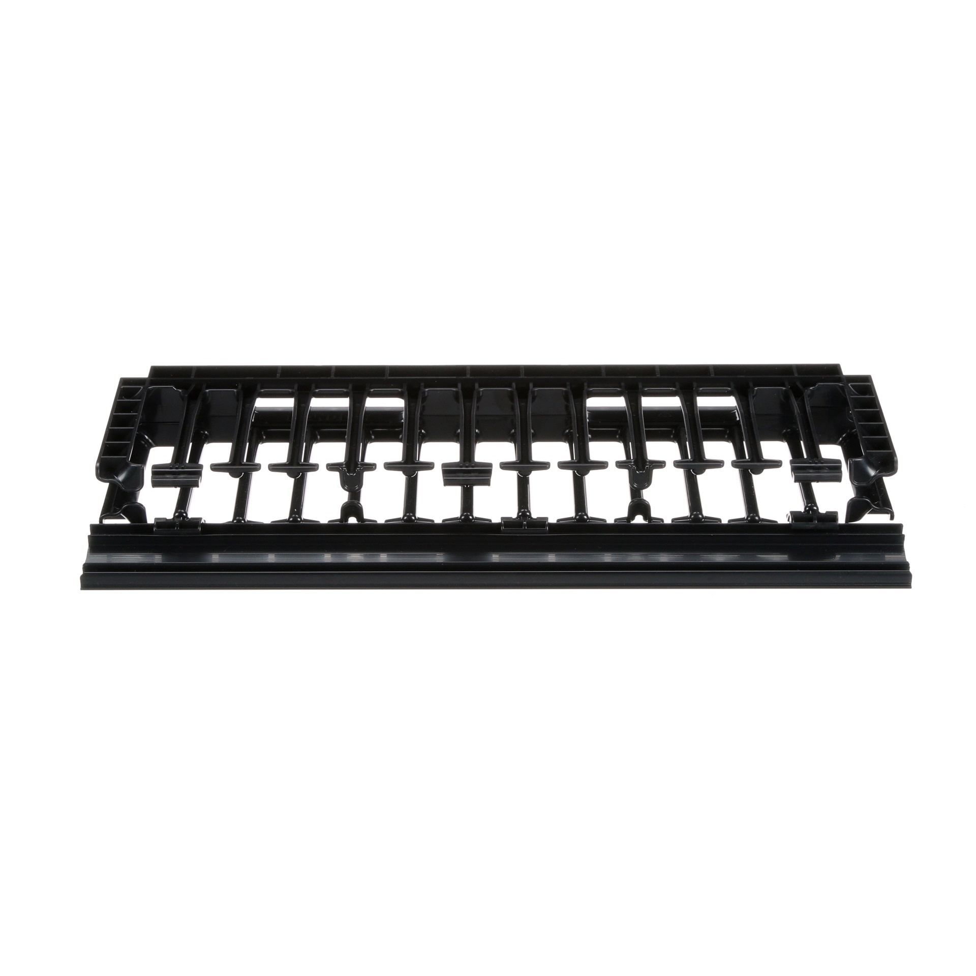 The NetManager™ High Capacity Horizontal Cable Manager cost-effectively organizes and protects copper and fiber network cabling in any standard EIA 19 inch (483mm) rack or cabinet. Large front finger openings easily accommodate Cat 6 and 6A cables, reducing installation time and maintenance costs. The single-sided manager is 1 RU and has a hinged front cover only. The manager is black.