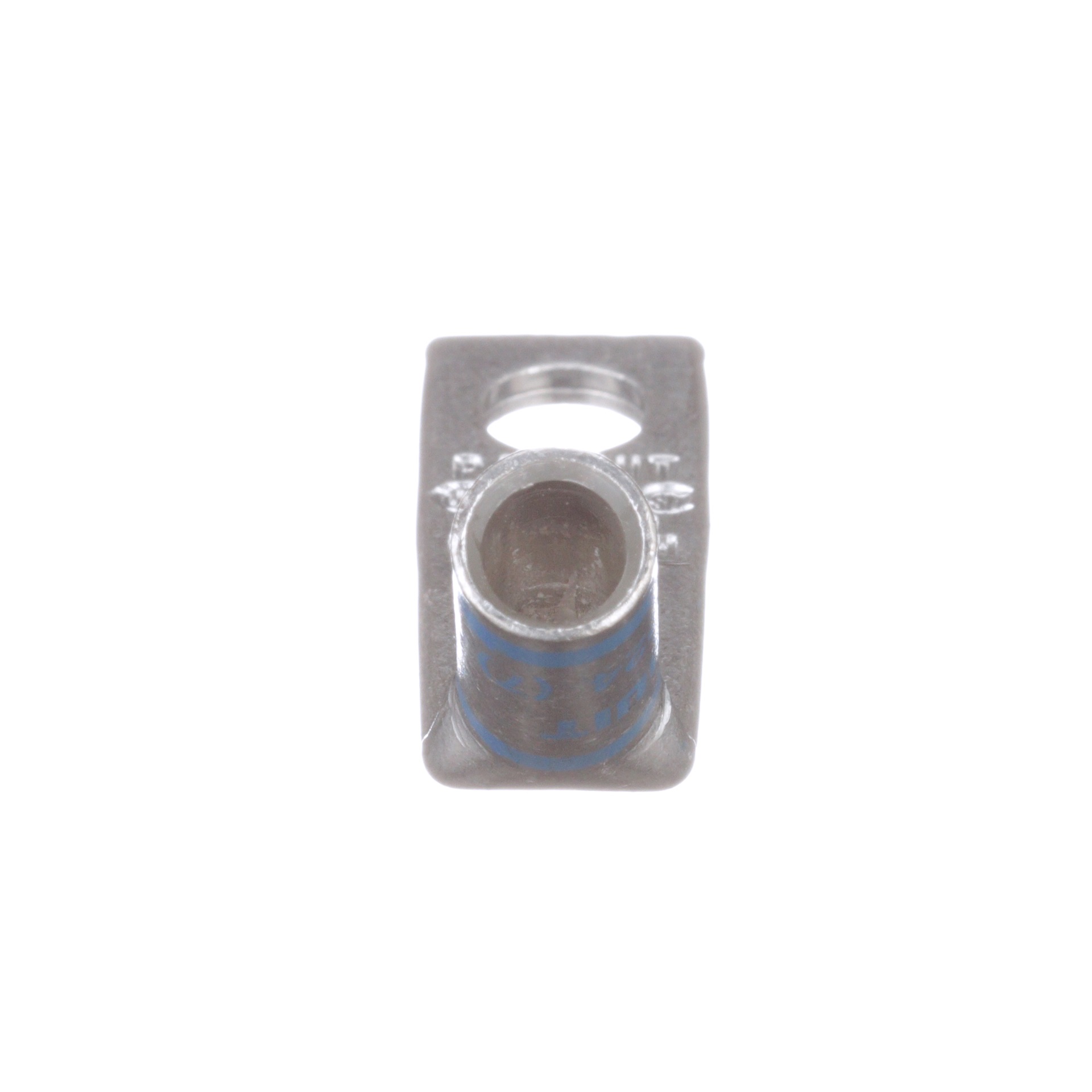 The LCD6-14AH-L Tin-Plated Copper Compression Lug, two-hole, standard barrel, has color-coded barrels marked with Panduit and specified competitor die index numbers for proper crimp die selection. An inspection window aids to visually assure full conductor insertion, and the tin-plate material helps to inhibit corrosion. UL Listed and CSA Certified to 35 KV and temperature rated to 90°C.