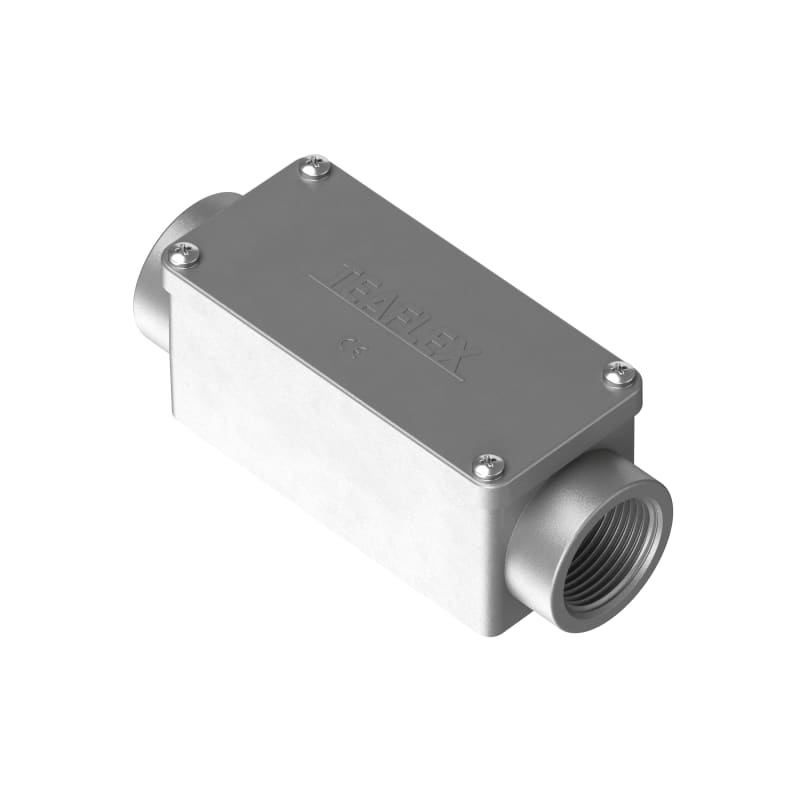Cassetta di derivazione a forma rettangolare con all'interno una vite per il collegamento di messa a terra, costruita in pressofusione di alluminio con altissimo grado di finitura. Coperchio d'ispezione con bordino paraspruzzo e relativa guarnizione, viti di chiusura in acciaio inox AISI 304 IP65.