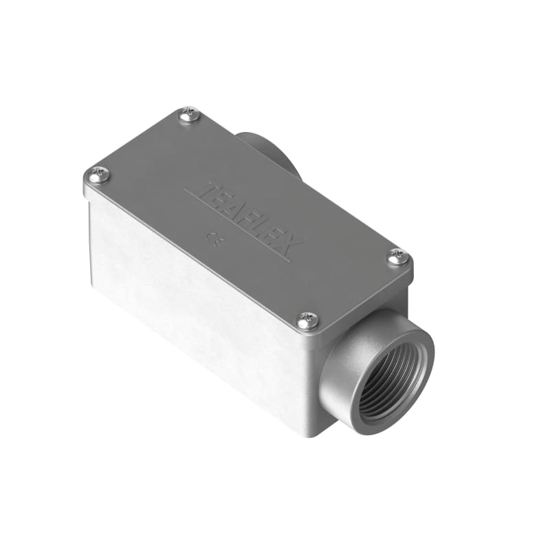 Cassetta di derivazione a forma rettangolare con all'interno una vite per il collegamento di messa a terra, costruita in pressofusione di alluminio con altissimo grado di finitura. Coperchio d'ispezione con bordino paraspruzzo e relativa guarnizione, viti di chiusura in acciaio inox AISI 304 IP65.
