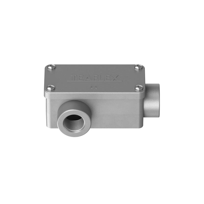 Cassetta di derivazione a forma rettangolare con all'interno una vite per il collegamento di messa a terra, costruita in pressofusione di alluminio con altissimo grado di finitura. Coperchio d'ispezione con bordino paraspruzzo e relativa guarnizione, viti di chiusura in acciaio inox AISI 304 IP65.