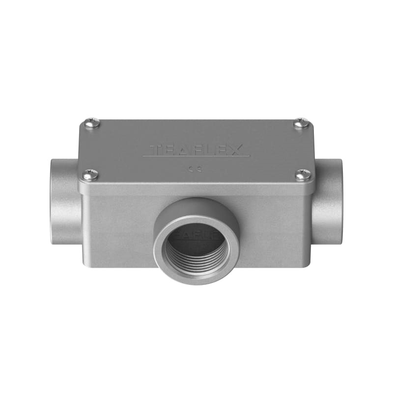 Cassetta di derivazione a forma rettangolare con all'interno una vite per il collegamento di messa a terra, costruita in pressofusione di alluminio con altissimo grado di finitura. Coperchio d'ispezione con bordino paraspruzzo e relativa guarnizione, viti di chiusura in acciaio inox AISI 304 IP65.