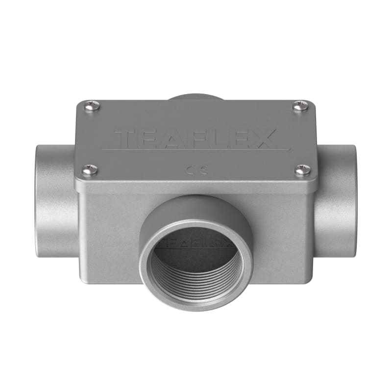 Cassetta di derivazione a forma rettangolare con all'interno una vite per il collegamento di messa a terra, costruita in pressofusione di alluminio con altissimo grado di finitura. Coperchio d'ispezione con bordino paraspruzzo e relativa guarnizione, viti di chiusura in acciaio inox AISI 304 IP65.