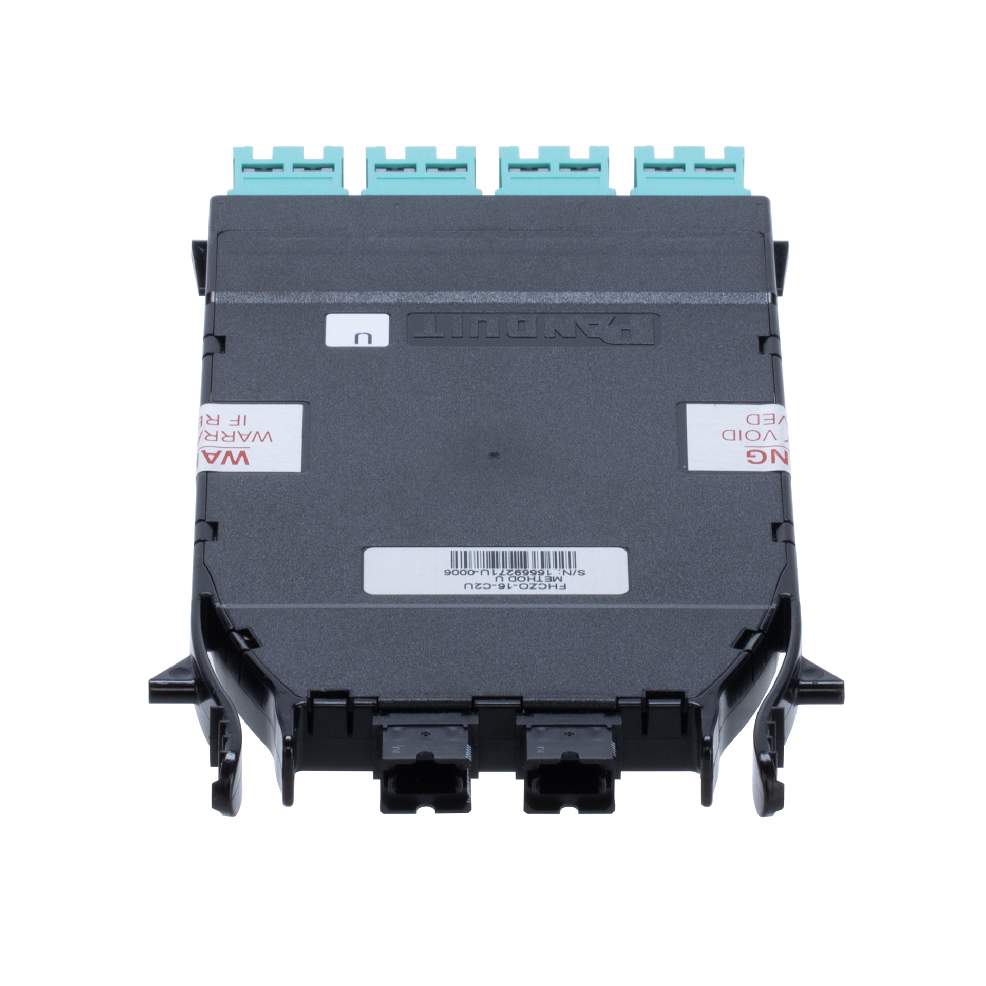 The HD Flex™ CS Cassette is an OM4 16-Fiber cassette. It features 2 x MPO-12 to 8 x Duplex CS adapters. It is wired for 4-to-1 breakout applications such as 100G to 4 x 25G.
