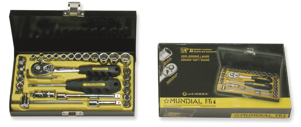 Cassetta in metallo bussole 1/4 - 33 pz.