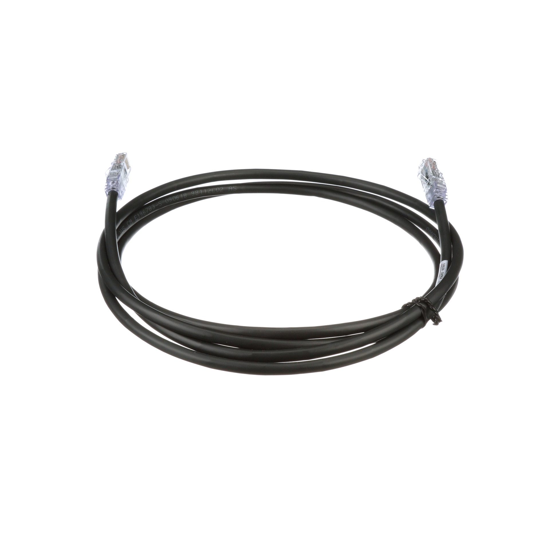 The TX6A™ 10Gig UTP Patch Cord is constructed of 24 AWG, unshielded, twisted pair, solid, CM cable with enhanced performance modular plugs. The patch cord offers a small 0.250 inch (6.4mm) cable diameter. The patented tangle free latch prevents snags and provides easy release saving time on frequent moves, adds, and changes. The patch cord’s slender strain relief boot provides easy access in high-density applications. The patch cord is 3 meters in length and black.