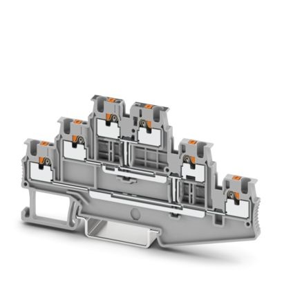 Morsetto a più piani, con ripartitore di potenziale, tensione nominale: 500 V, corrente nominale: 15 A, tipo di connessione: Connessione Push-in, 1. piano, Sezione di dimensionamento: 1,5 mm², sezione: 0,14 mm² - 1,5 mm², tipo di montaggio: NS 35/7,5, NS 35/15, colore: grigio
