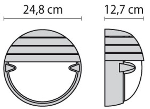 Apparecchio da parete, da soffitto e da palo, per interni ed esterni, costituito da: Base, anello o schermo in tecnopolimero / Diffusore in vetro pressato e satinato internamente / Classe II / Parabola riflettente in alluminio per le versioni incandescenza / Guarnizione in silicone / Possibilità di alimentazione anche con tubo laterale Ø 20 mm / Viti di chiusura in acciaio inox (su richiesta viti antifurto)
