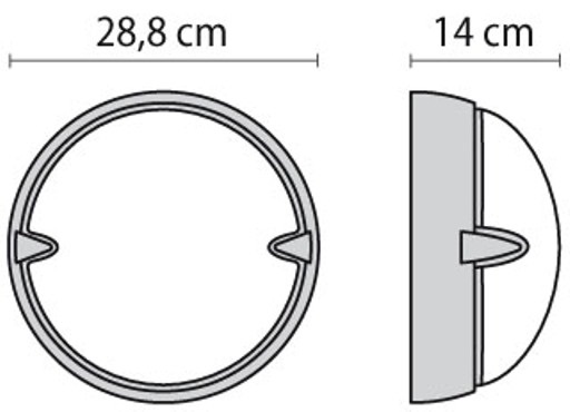 Apparecchio da parete, da soffitto e da palo, per interni ed esterni, costituito da: Base, anello o schermo in tecnopolimero / Diffusore in vetro pressato e satinato internamente / Classe II / Parabola riflettente in alluminio per le versioni incandescenza / Guarnizione in silicone / Possibilità di alimentazione anche con tubo laterale Ø 20 mm / Viti di chiusura in acciaio inox (su richiesta viti antifurto)