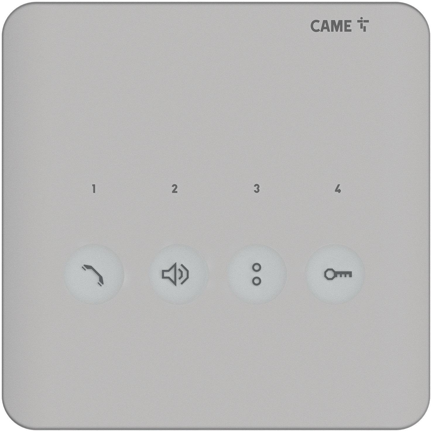 Citofono a parete caratterizzato da 4 tasti touch principali che permettono la gestione delle funzioni primarie quali la risposta e il riaggancio della comunicazione, l'apertura porta, la regolazione/esclusione suoneria (con LED di segnalazione quando esclusa) e l'invio di un comando ausiliario programmabile. Adatto agli impianti multiutenza in quanto permette fino a 6 chiamate intercom e l'invio della segnalazione "Panico" per la richiesta di soccorso al portiere. Se configurato abilita fino a 4 comandi ausiliari aggiuntivi, alternativi alle chiamate intercom. Consente la gestione della funzione "apri-cancello" e la visualizzazione dello stato del varco controllato tramite LED di segnalazione. È inclusa la staffa per l'installazione a parete su scatola 503 (orizzontale o verticale) e su scatola tonda Ø 60 mm. Compatibile con sistema X1 e XIP.