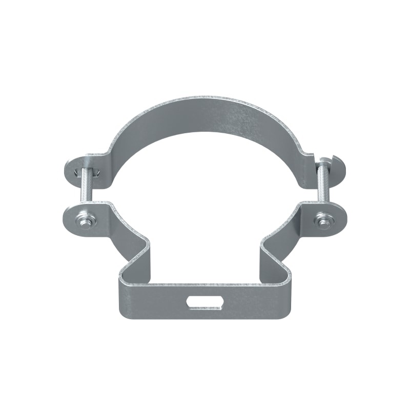 Collare di fissaggio in acciaio zincato per tubo STD con viti di chiusura.