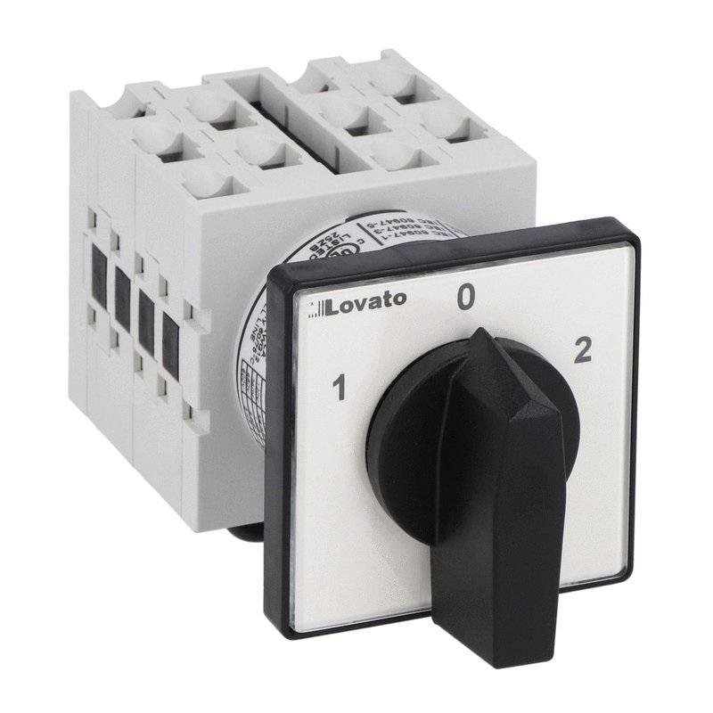 ROTARY CAM SWITCH GX SERIES, CHANGEOVER SWITCH 4 POLES 16A, FOR FRONT MOUNTING WITH BLACK HANDLE, FRONT PLATE 48X48MM