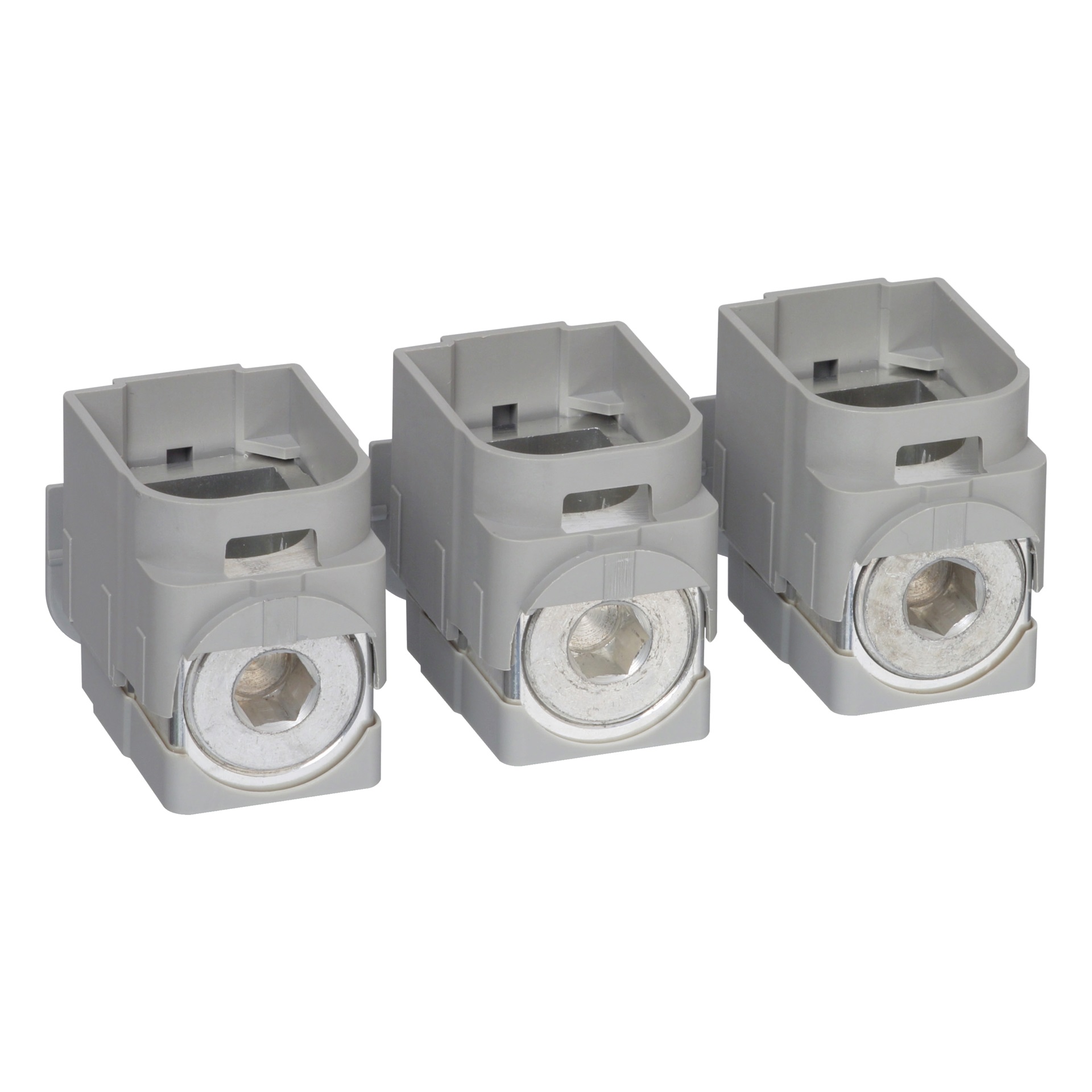 Connettore cavo TeSys GV, per interruttori per motori GV5, GV7. Da agganciare a un terminale dell'interruttore, consente il collegamento di cavi senza connettori. Fino a 220 A, per cavi di sezione trasversale 1,5- 185 mm², collegamento cavi tramite morsetti a vite. set di 3 unità.