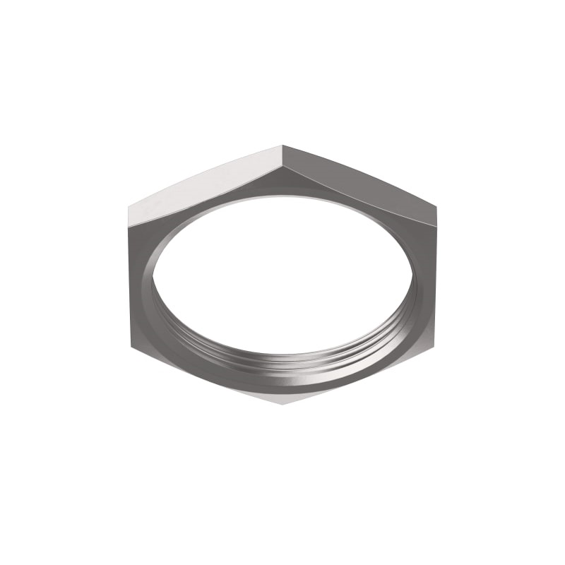Controdado in ottone nichelato con filetto ISO-Metrico adatto per tutti i raccordi e pressacavi.