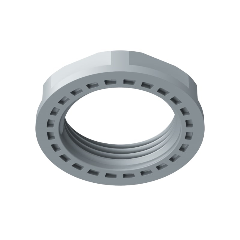 Controdado in fibra di vetro rinforzato, adatto per tutti i raccordi e pressacavi.