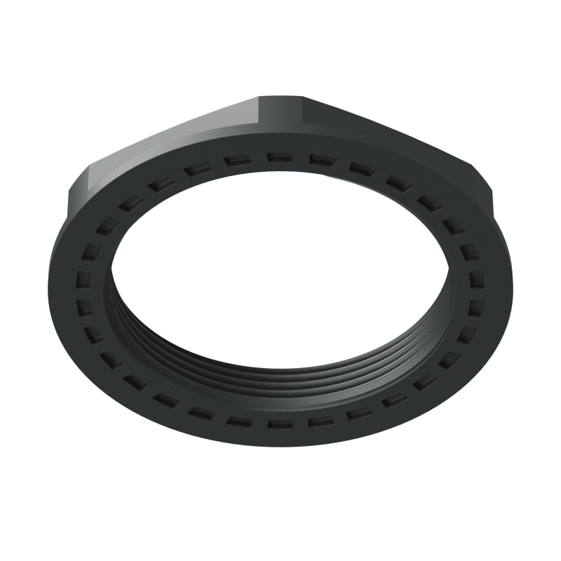 Controdado in fibra di vetro rinforzato, adatto per tutti i raccordi e pressacavi.