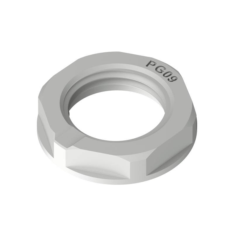 Controdado in fibra di vetro rinforzato, adatto per tutti i raccordi e pressacavi.