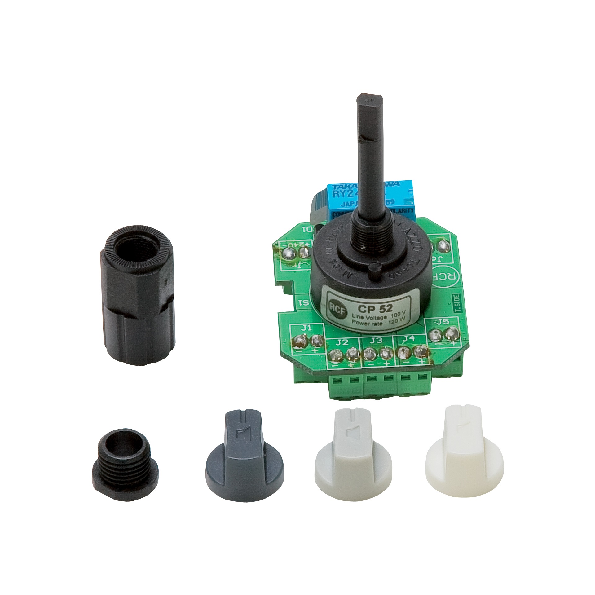Il commutatore CP 52 è utilizzabile nei sistemi a tensione costante 100 V per selezionare una linea (tra le max. 5 disponibili). La potenza complessiva massima del carico non deve essere superiore a 120 W. È dotato di relè (attivabile tramite un comando 24 V c.c.) per effettuare chiamate d’emergenza provenienti dalla linea nr.1 (saltando il commutatore). Il commutatore CP 52 può essere installato su qualunque telaio portafrutti (per impianti elettrici civili) semplicemente forando un falso polo ed avvitando il modulo. Sono fornite a corredo 3 manopole, ciascuna di colore diverso: bianco, argento, antracite.