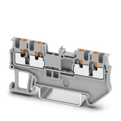 Morsetto passante, tensione nominale: 500 V, corrente nominale: 17,5 A, numero di connessioni: 4, tipo di connessione: Connessione Push-in, Sezione di dimensionamento: 1,5 mm², sezione: 0,14 mm² - 1,5 mm², tipo di montaggio: NS 35/7,5, NS 35/15, colore: grigio