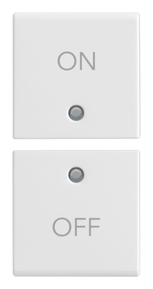 Due mezzi tasti intercambiabili 1 modulo, simboli ON e OFF, bianco