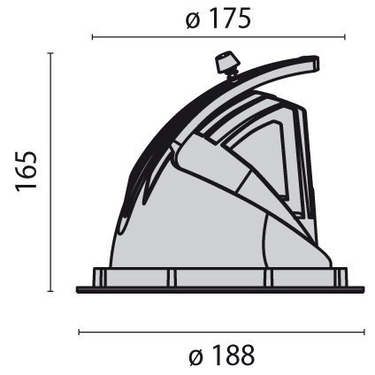 Faretto da incasso con corpo in materiale resistente di colore bianco, progettato per l’illuminazione interna. Presenta un diametro di 175 mm e un’altezza di 165 mm, con una base di 188 mm di diametro, ideale per installazioni a soffitto. La struttura è dotata di un sistema di fissaggio regolabile per un orientamento preciso della luce. Progettato per garantire un’illuminazione efficiente e uniforme, si adatta perfettamente ad ambienti residenziali e commerciali, combinando funzionalità e design discreto.