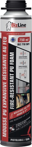 Schiuma poliuretanica resistente al fuoco per pistola rosso chiaro 750 ml Schiuma a base di poliuretano monocomponente. Conforme alla norma europea 1366-4. È possibile regolare la quantità applicata tramite la pistola BIZ 710383.