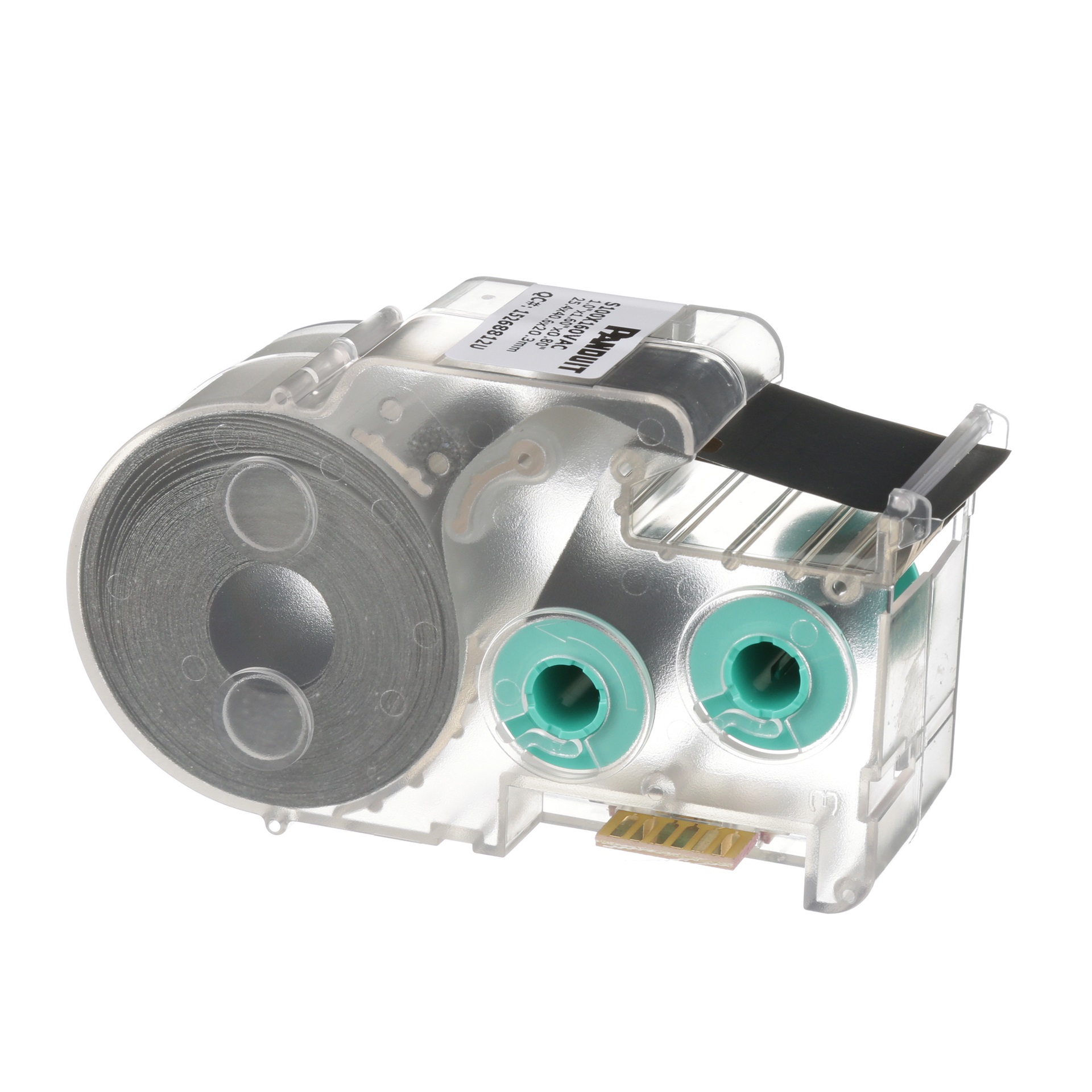 The S100X160VAC Thermal Transfer Self-Laminating Label includes a white print-on area and clear overlaminate to protect the legend for easy identification. It is sized specifically for wire and cable applications. The cassette contains an integrated memory device for automatic formatting, recall of last legend used, and the number of labels remaining. For use with LS8E and LS8EQ printers. Vinyl. 1.0" x 1.6" (25.4 mm x 40.64 mm). Color Clear/White. 175 labels/cassette. 1 cassette/package.