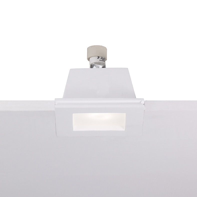 Faretto ad incasso in gesso rasato a scomparsa totale. Disponibile in versione tonda e quadrata, con vetro a protezione della fonte luminosa per un effetto di luce diffusa. Attacco GU10 che consente di montare lampadina LED. Cassaforma per installazi one in muratura da ordinare come accessorio.