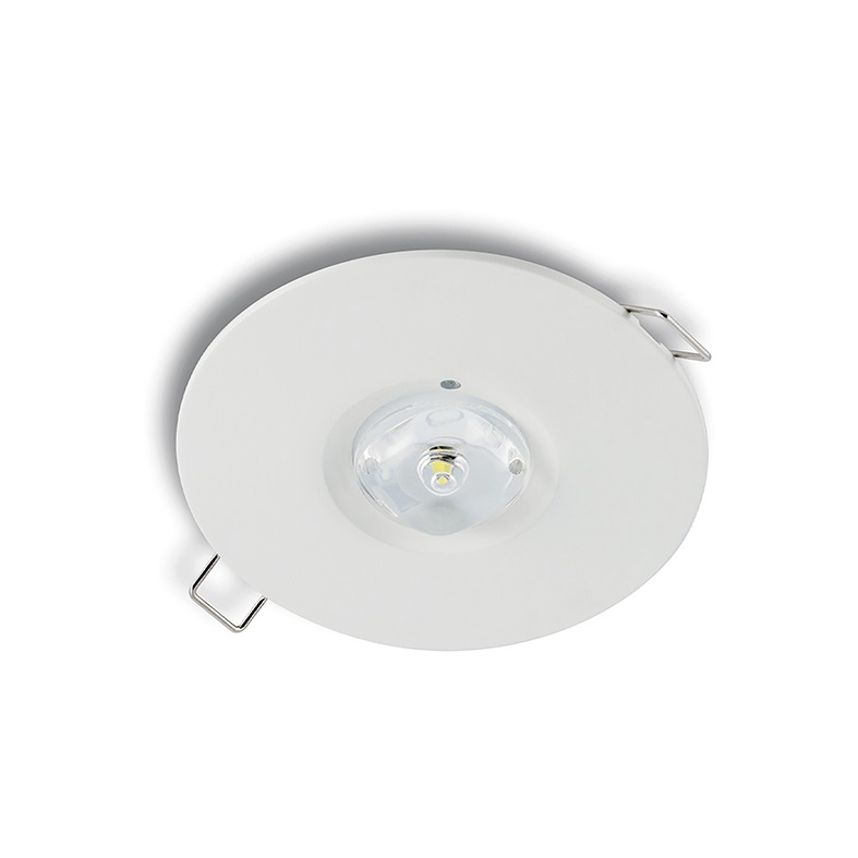 Apparecchio LED di emergenza ad alta luminosit? ad incasso applicabile a parete o a soffitto. Dimens ioni contenute, quasi invisibile in condizioni distand by in ricarica. Disponibile in due dimensioni con relative potenze e raggio di azione. Idealep er altezze di installazione fino a 6 metri.