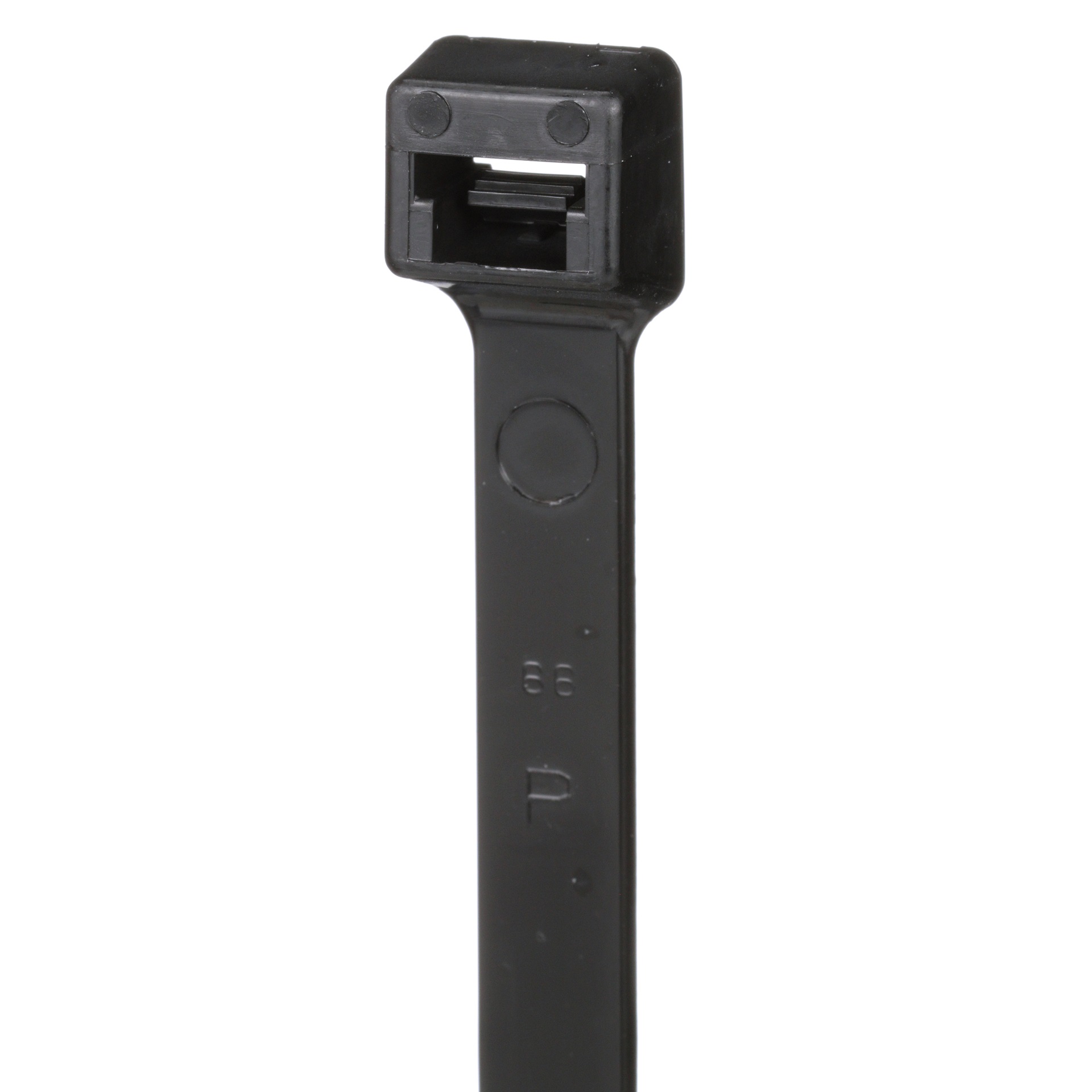 Cable Tie, 27.6 Inches (701 mm) Length, Light-Heavy, 120 Pounds Minimum Loop Tensile Strength, Weather Resistant Nylon 6.6, Black. Material Flammability Rating of HB. Weather Resistant material has greater resistance to damage caused by ultraviolet light. Indoor or outdoor use. One-piece construction for consistent performance and reliability. Low thread force.